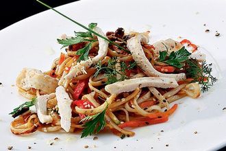 340 руб. В корзину Купить в 1 клик Описание лапша пшеничная нежное куриное филе свежие овощи фирменный соус Вес: 350 гр