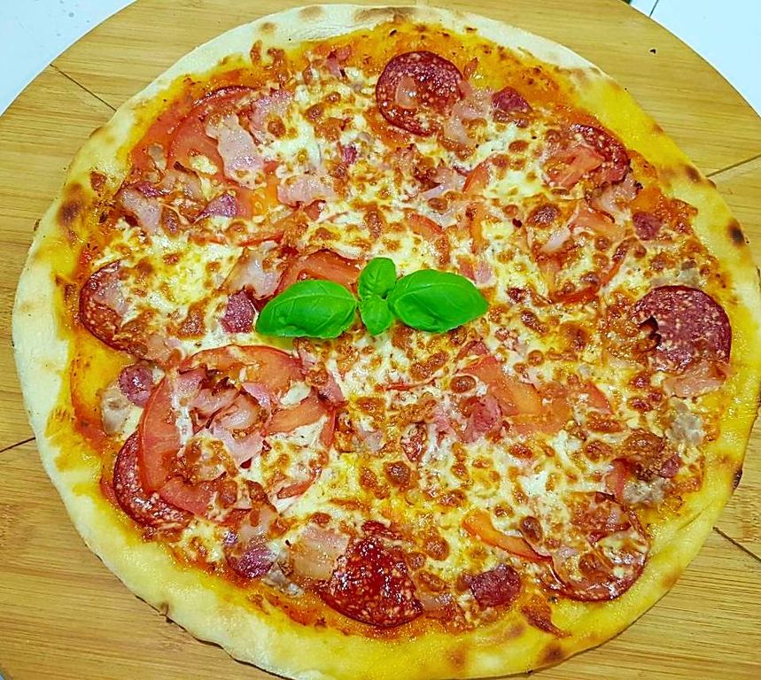 650 руб. В корзину Купить в 1 клик Описание тонкое тесто фирменный томатный соус пепперони колбаски охотничьи бекон свинина (фарш) томаты сыр моцарелла Размер:30 см С этим товаром покупаютВ корзинуКока Кола 1л170 ₽ хитВ корзинуСОУС ЧЕСНОЧНЫЙ60 ₽ В корзинуСОУС 1000 ОСТРОВОВ60 ₽ В корзинуцезарь с креветкой300 ₽