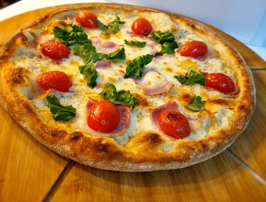 Пицца на традиционном тесте с бортиками(к которым подаётся соус(вкус соуса уточняйте у оператора))
