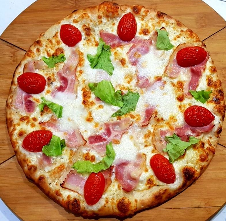 650 руб. В корзину Купить в 1 клик Пицца на тонком тесте нежный бекон сырное ассорти черри соус "Цезарь" Описание бекон сыр Моцарелла двух видов помидоры "черри" соус "Цезарь" С этим товаром покупаютВ корзинуэби вакамэ280 ₽ В корзинуКока Кола 1л180 ₽