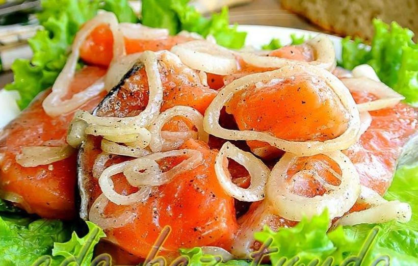480 руб. В корзину Купить в 1 клик Салат из слабо-солёной форели Описание Форель сс Лук репчатый Сок лимона