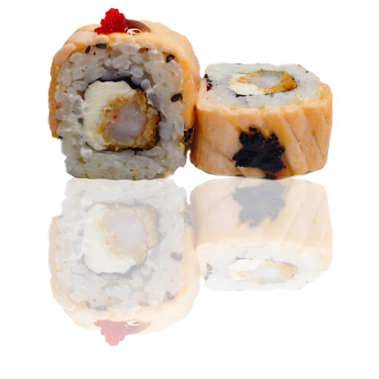 большая порция 430 руб. В корзину Купить в 1 клик вес 250 гр креветка темпура лосось рис сыр творожный соус унаги тобико кунжут