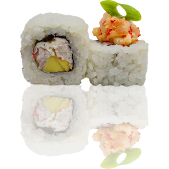 новинка 290 руб. В корзину Купить в 1 клик вес 200 гр креветка снежный краб творожный сыр авокадо соус спайс лук зеленый