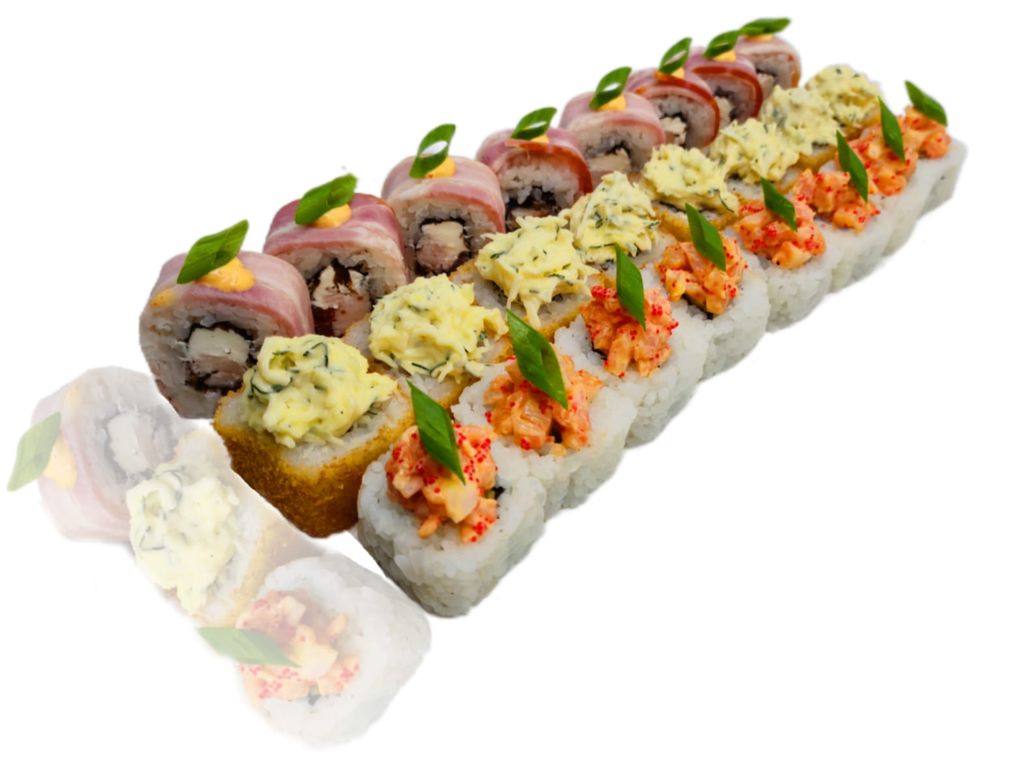 лучший выбор 790 руб. В корзину Купить в 1 клик вес 610 гр /24 кусочка мясной биффо спайси эби асахи темпура